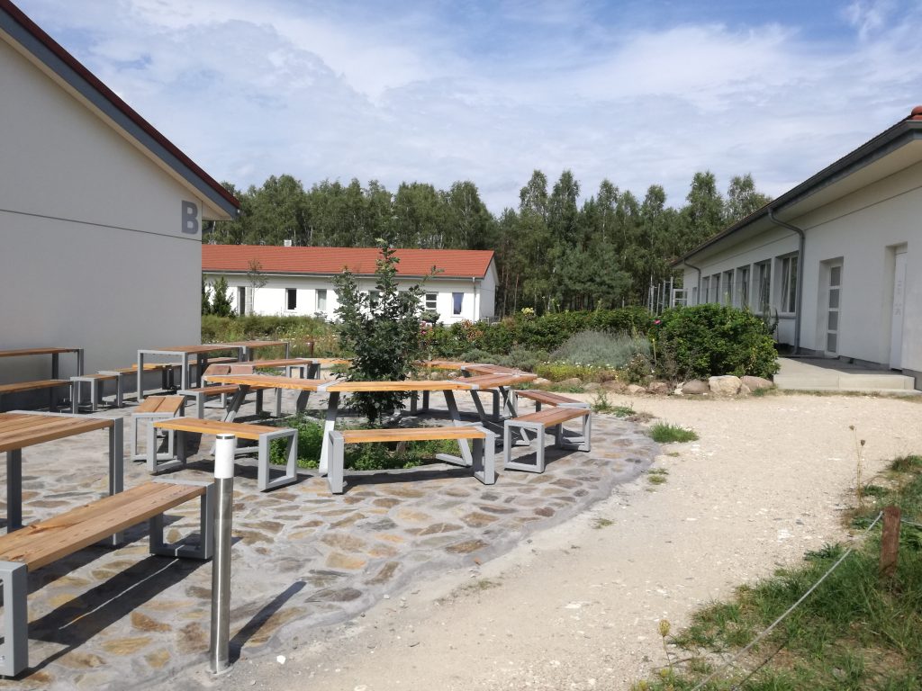 Zudem möchten unsere polnischen Dhamma-Freunde davon berichten, dass die beiden Terrassen vor den Speisesälen inzwischen fast fertig sind. Viele Stunden Dhamma-Service von etlichen Helfer*innen und spezielle Spenden direkt für die Terrassen machten diese erneute Verschönerung von Dhamma Pallava möglich. Der polnische Vipassana-Verein erfüllte so den Wunsch vieler Meditierender nach Sitz-und Essmöglichkeiten im Freien. Das Ensemble wird abgerundet durch einen neuen kleinen Teich zwischen den beiden Terrassen – ein Ruhepunkt an diesem zentralen Ort im Vipassana-Zentrum Dhamma Pallava.